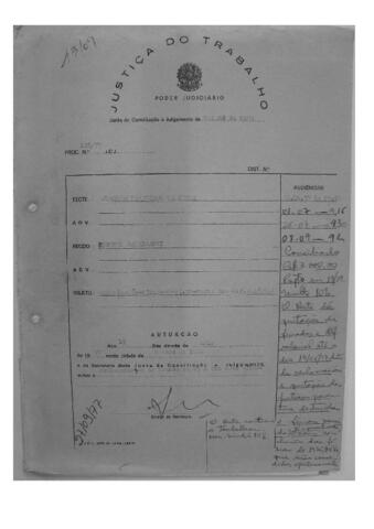 O trabalhador rural Joaquim Francisco da Silva entrou com reclamação contra o Engenho Cavalcanti alegando que considerava desfeito o contrato de trabalho pelo descumprimento, por parte do reclamante, na disponibilização certa de porção de terra para cultivo, conforme a lei, e requeriu indenização; férias; prejulgado 20; feriados e diferença salarial. Após perícia, as partes entraram em conciliação e ficou definido que o reclamado pagaria a importância de Cr$3.000,00 ao reclamante, que, por sua vez, deu como quitado. O processo foi arquivado em 27-09-1977.